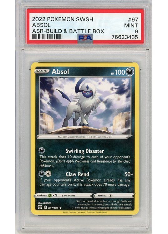 Du køber her et PSA 9 Absol – Non Holo pokemon kort fra SWSH Astral Radiance serinen.