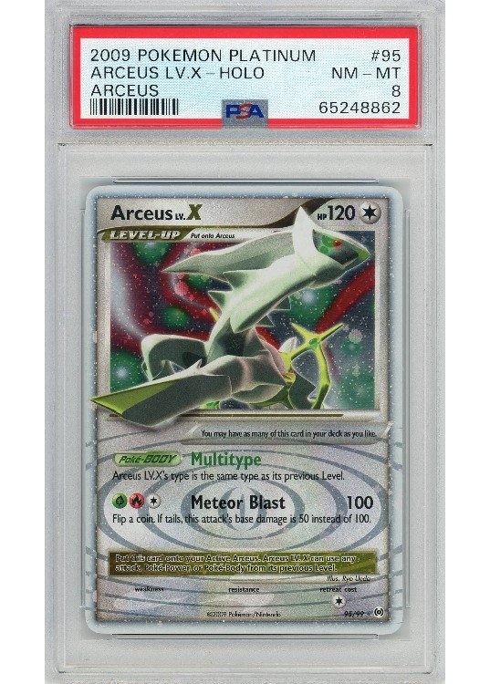 Du køber her et PSA 8 Arceus LV.X pokemon kort fra PL Arceus serinen.