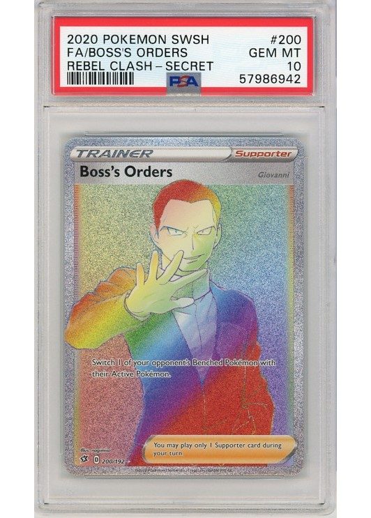 Du køber her et PSA 10 Boss’s Orders pokemon kort fra SWSH Rebel Clash serinen.