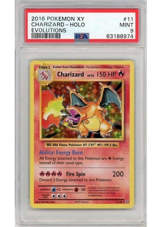 Du køber her et PSA 9 Charizard pokemon kort fra XY Evolutions serinen.