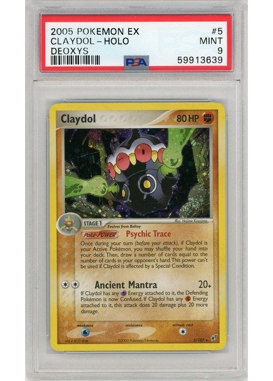 Du køber her et PSA 9 Claydol pokemon kort fra EX Deoxys serinen.