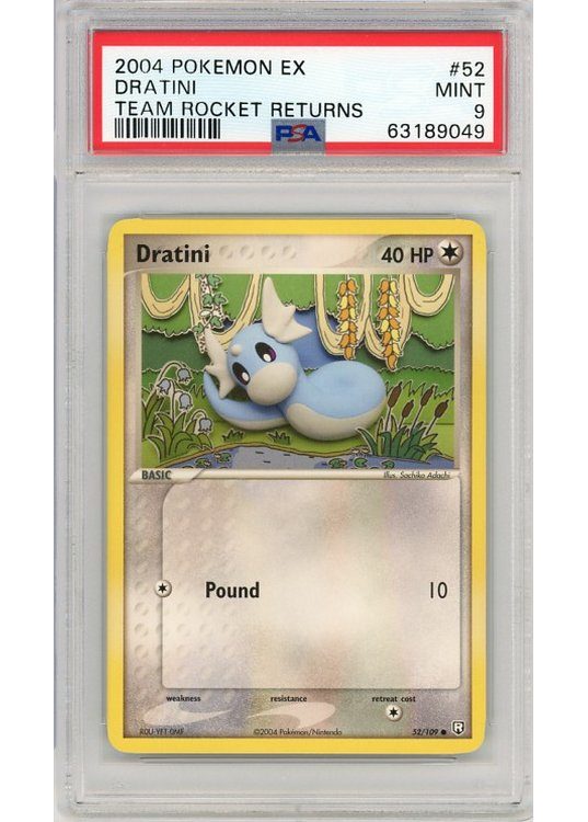 Du køber her et PSA 9 Dratini pokemon kort fra EX Team Rocket Returns serinen.