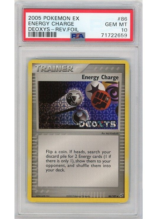 Du køber her et PSA 10 Energy Charge Reverse Foil pokemon kort fra EX Deoxys serinen.