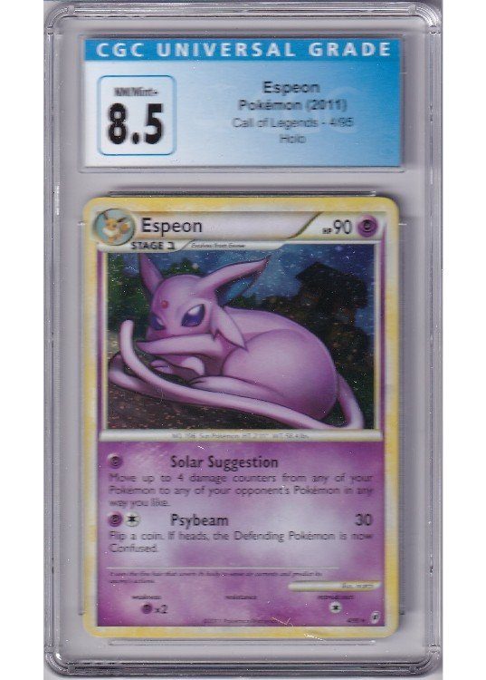 Du køber her et CGC 8.5 Espeon pokemon kort fra Call of Legends serinen.