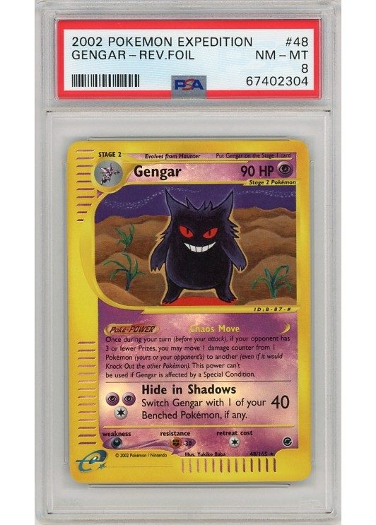 Du køber her et PSA 8 Gengar Reverse Foil pokemon kort fra Expedition serinen.