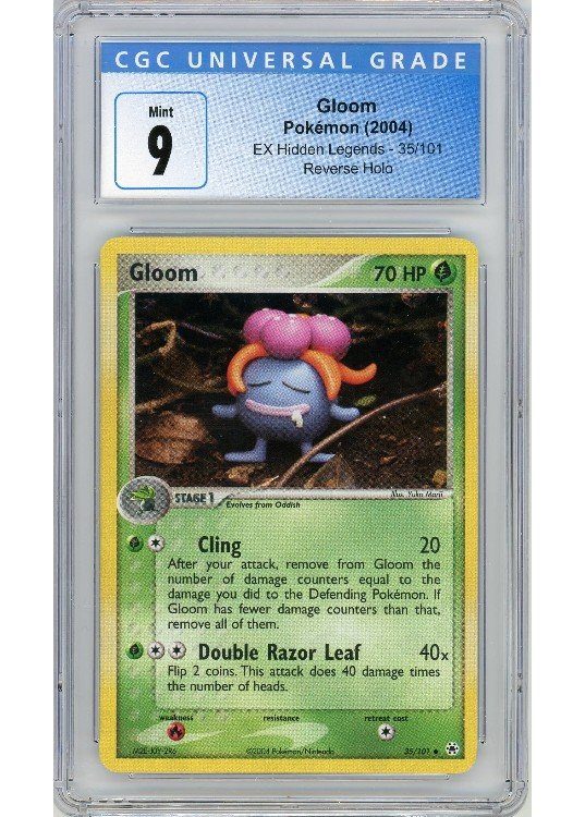Du køber her et CGC 9 Gloom Reverse Foil pokemon kort fra EX Hidden Legends serinen.