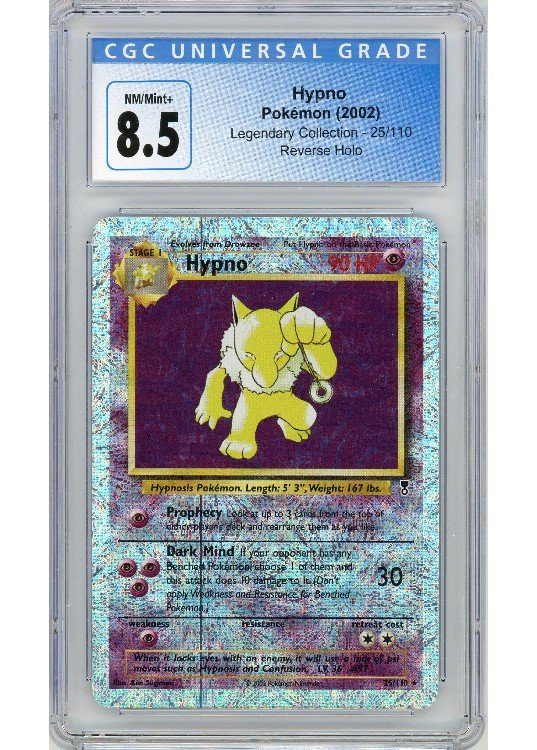 Du køber her et CGC 8.5 Hypno Reverse Foil pokemon kort fra Legendary Collection serinen.