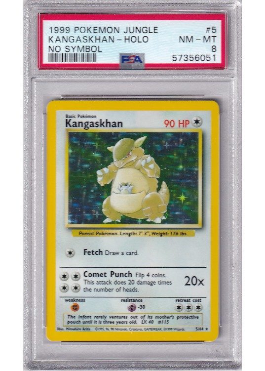 Du køber her et PSA 8 Kangaskhan – No Symbol Error pokemon kort fra Jungle serinen.