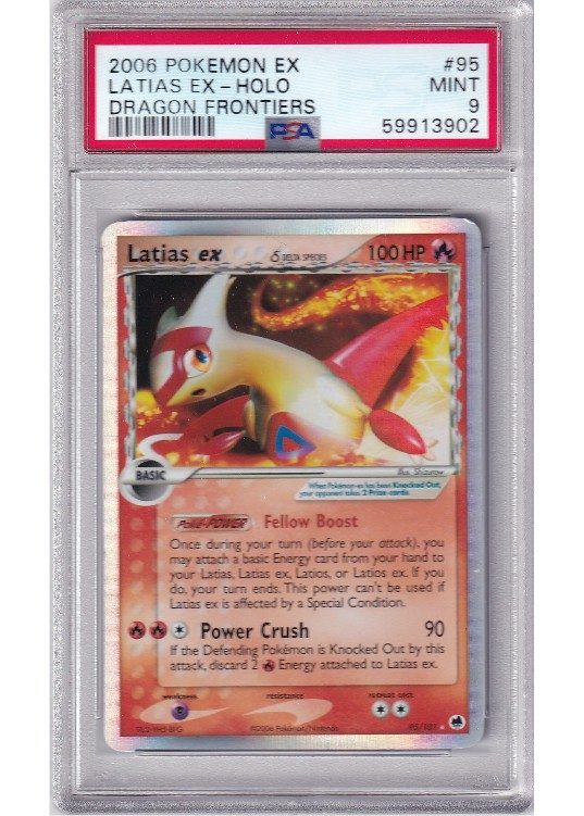 Du køber her et PSA 9 Latias ex δ pokemon kort fra EX Dragon Frontiers serinen.