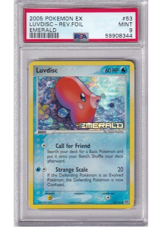 Du køber her et PSA 9 Luvdisc Reverse Foil pokemon kort fra EX Emerald serinen.