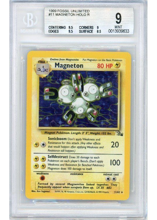 Du køber her et BGS 9 Magneton pokemon kort fra Fossil serinen.