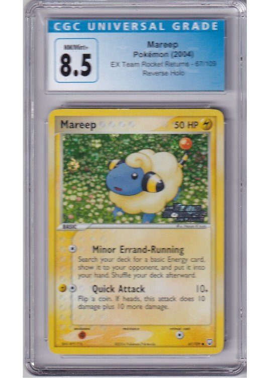 Du køber her et CGC 8.5 Mareep Reverse Foil pokemon kort fra EX Team Rocket Returns serinen.