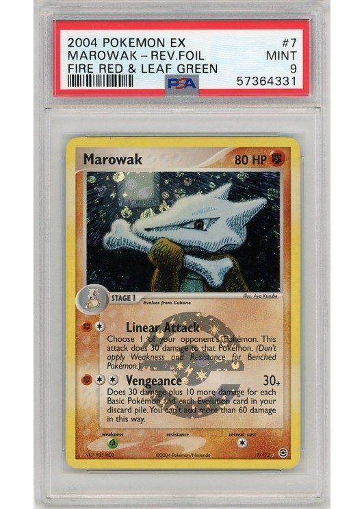 Du køber her et PSA 9 Marowak Reverse Foil pokemon kort fra EX FireRed & LeafGreen serinen.