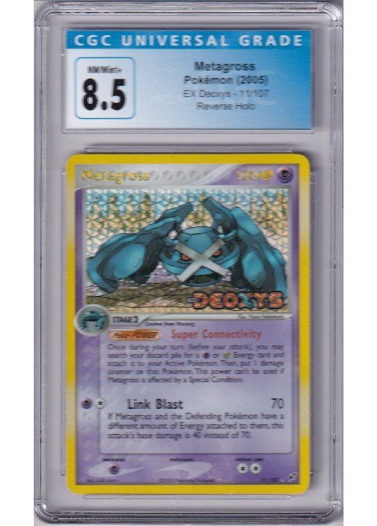 Du køber her et CGC 8.5 Metagross Reverse Foil pokemon kort fra EX Deoxys serinen.