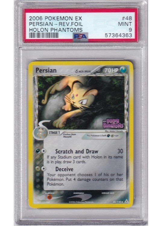 Du køber her et PSA 9 Persian δ Reverse Foil pokemon kort fra EX Holon Phantoms serinen.