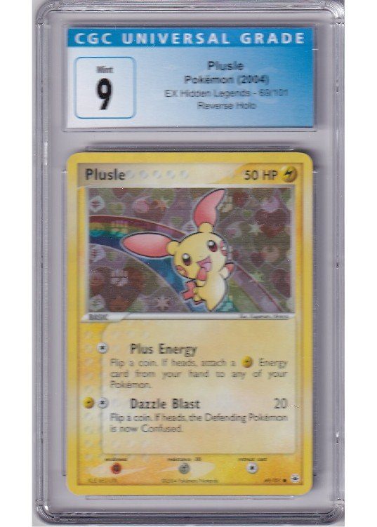 Du køber her et CGC 9 Plusle Reverse Foil pokemon kort fra EX Hidden Legends serinen.