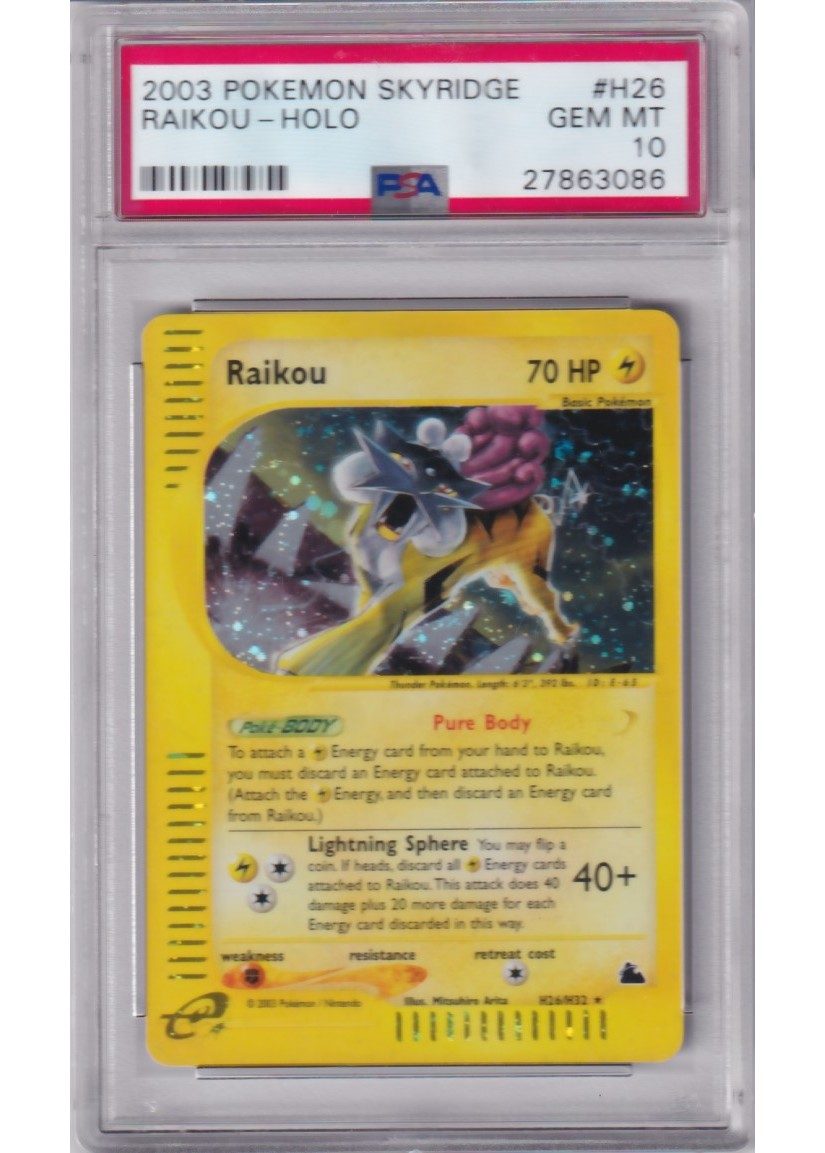 Du køber her et PSA 10 Raikou pokemon kort fra Skyridge serinen.