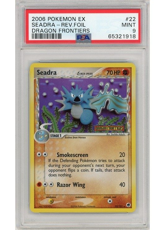 Du køber her et PSA 9 Seadra δ Reverse Foil pokemon kort fra EX Dragon Frontiers serinen.