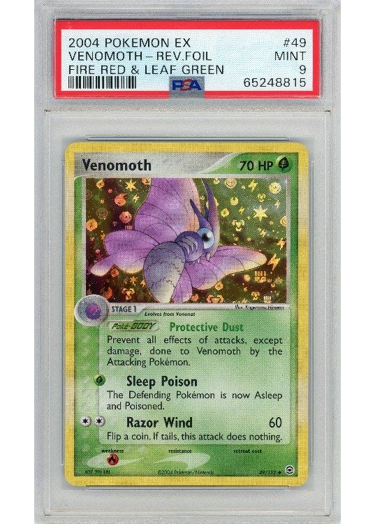 Du køber her et PSA 9 Venomoth Reverse Foil pokemon kort fra EX FireRed & LeafGreen serinen.