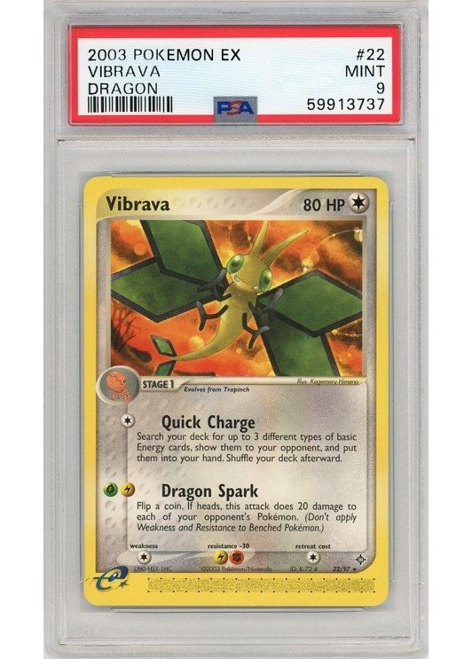 Du køber her et PSA 9 Vibrava pokemon kort fra EX Dragon serinen.